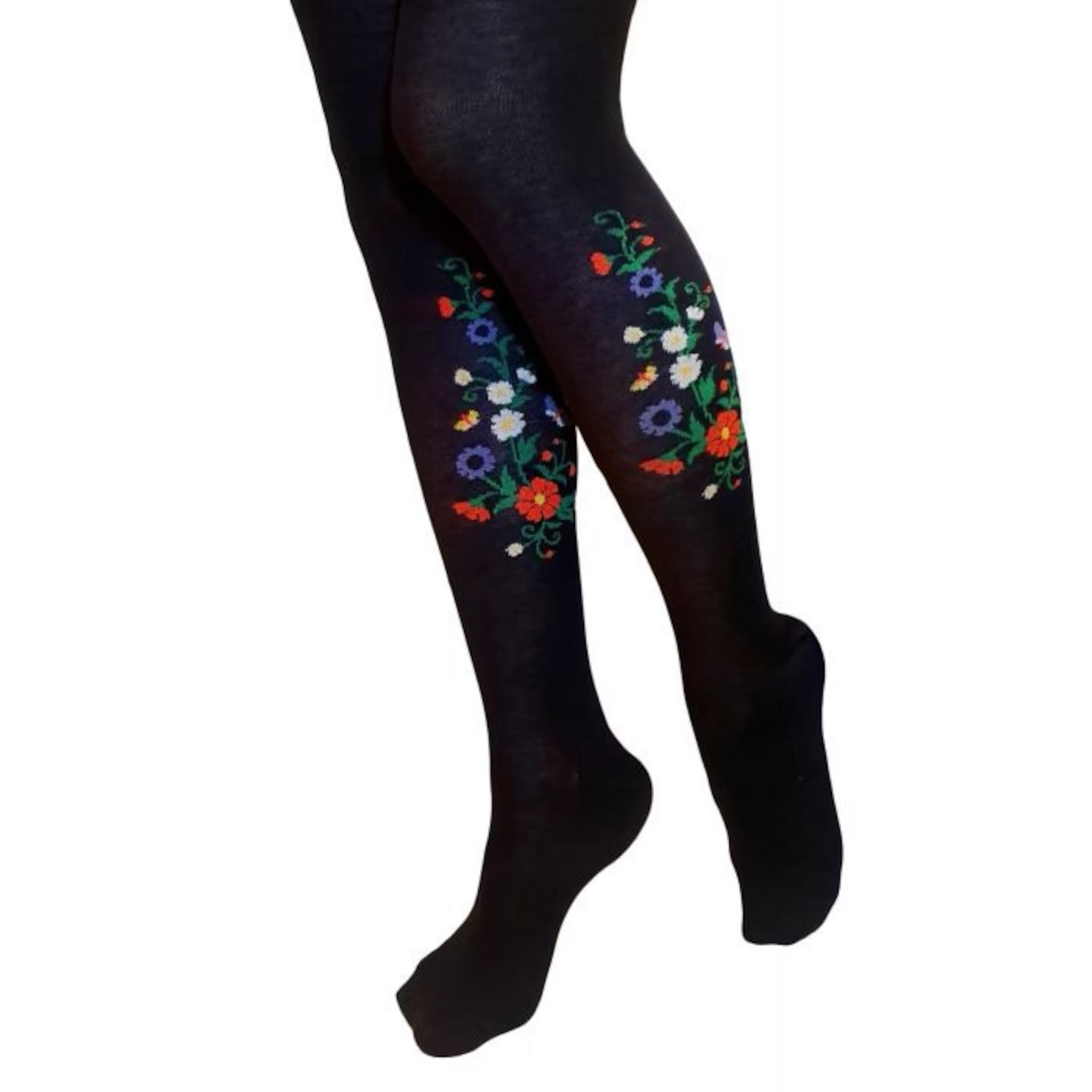 GIFT IDEA!! Beautiful Ladies / Girls black tights with an attractive floral design (Estonian national floral knit pattern). Made of 80% cotton, 17% polyamide and 3% elastane, which makes the tights warm and comfortable. Featuring a gorgeous floral design on the leg (inner and outer), these elegant tights will be perfect for any evening wear look or why not during daytime at school or the office. Please watch the video to have a proper idea, what the tights look like!