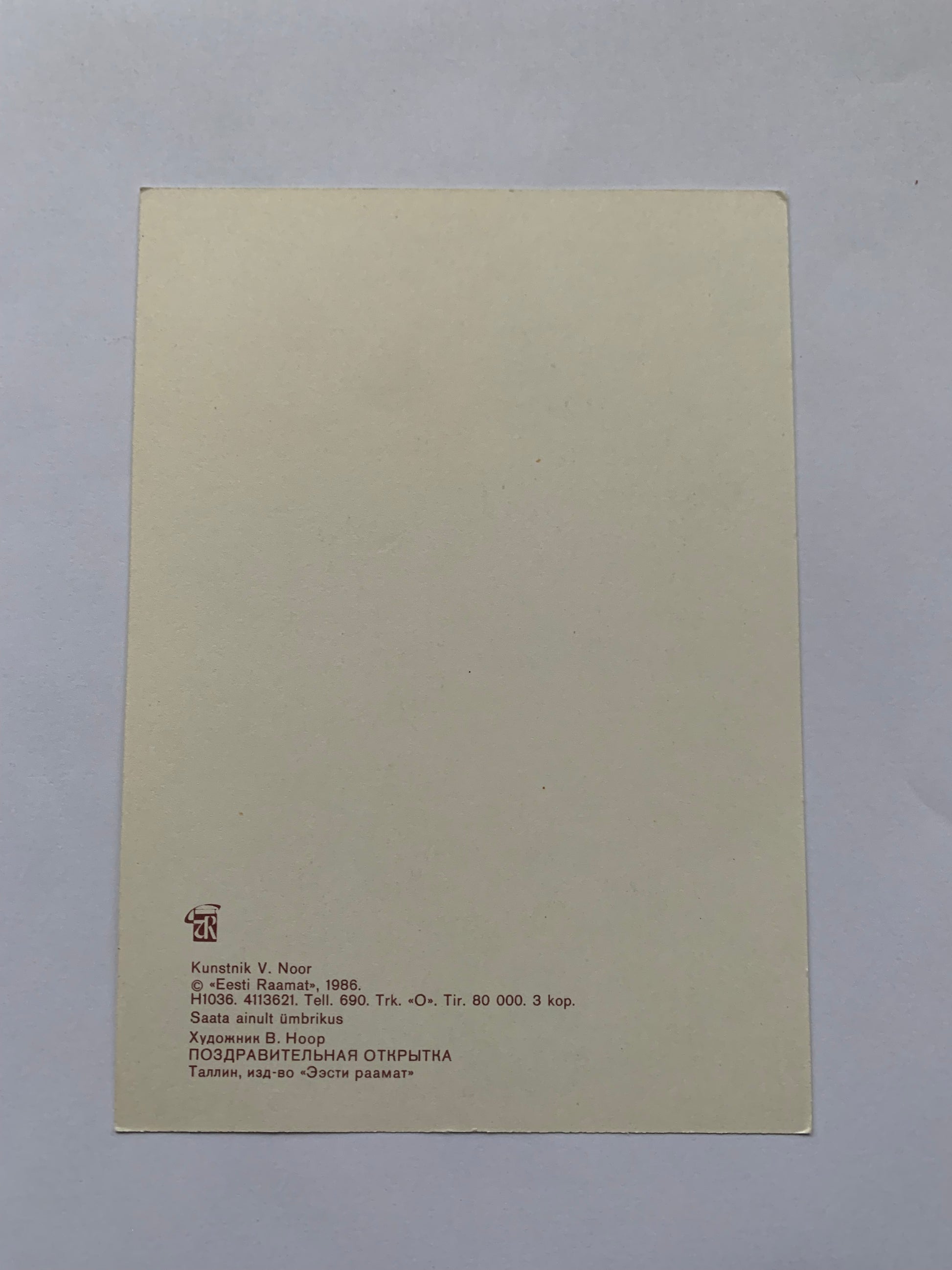 Estonian art postcard - Artist Viive Noor - Boy Girl Dog Flowers - 1986 - unused