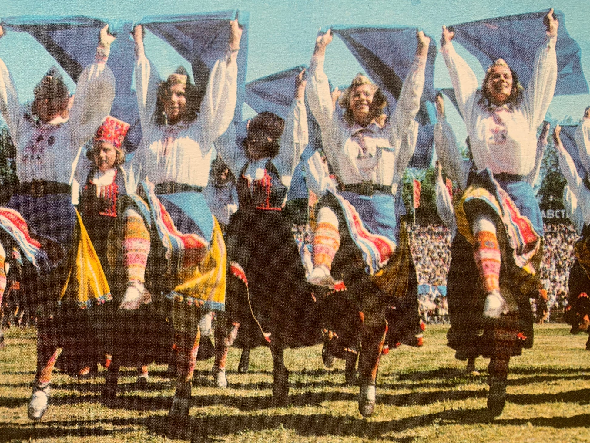 Estonian Dance And Song Festival postcard - Girls dancing in Estonian Folk Dresses - 1975 - unused