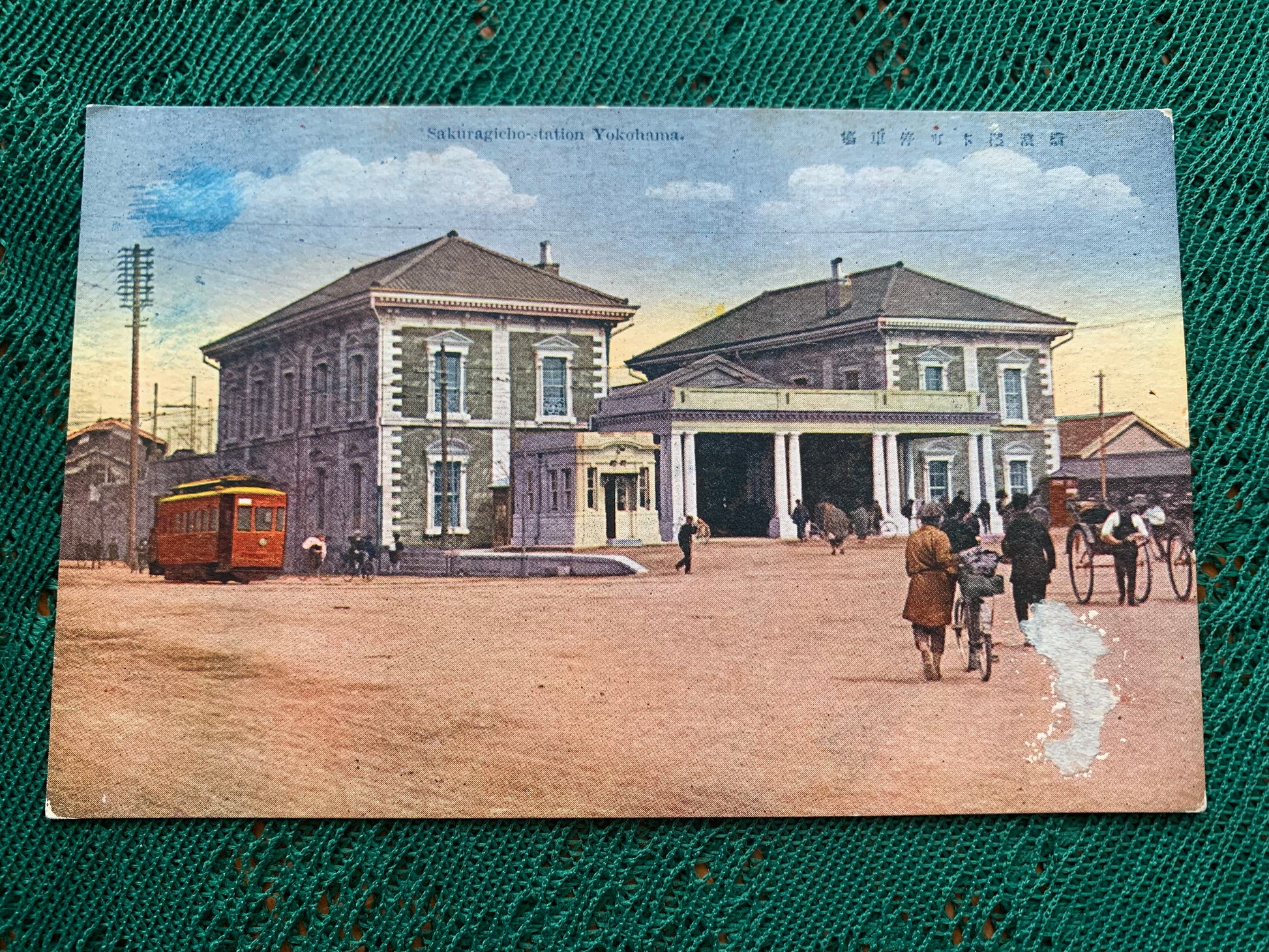 Old postcard - Antique postcard - Sakuragicho-station Yokohama - Japan - Tram - early 1900's