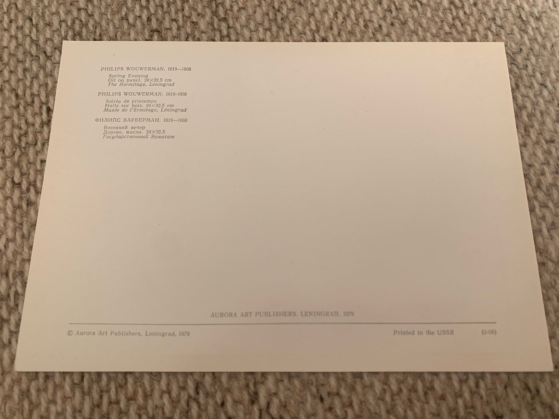 PHILIPS WOUWERMAN art postcard - Spring Evening - Reproduction - Aurora Art Publishers - The Hermitage in Leningrad - 1979. Russia USSR - unused