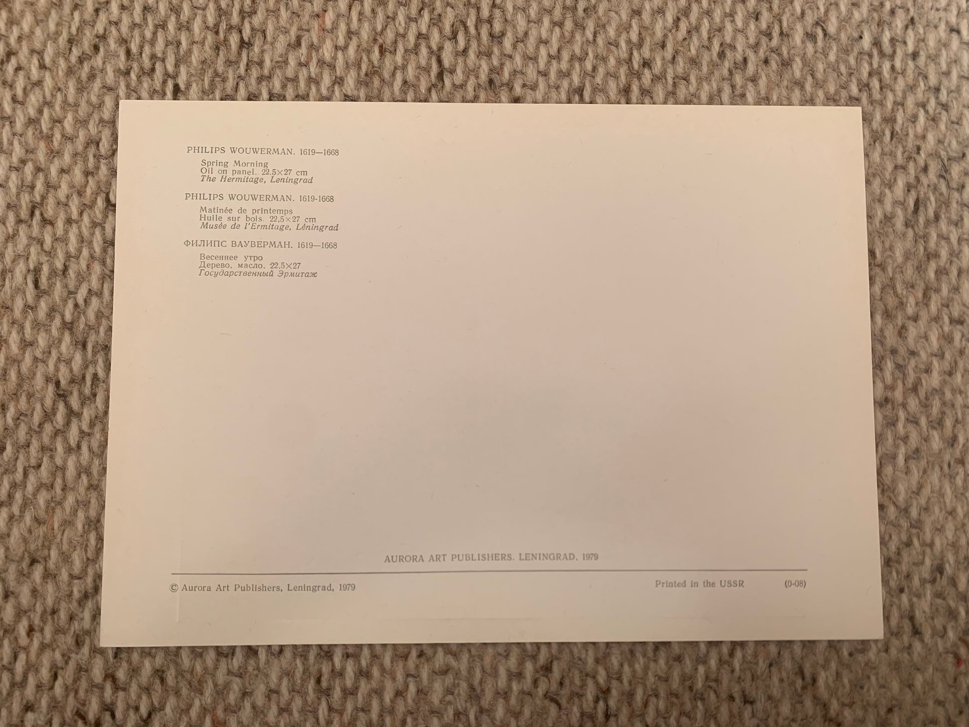 PHILIPS WOUWERMAN art postcard - Spring Morning - Reproduction - Aurora Art Publishers - The Hermitage in Leningrad - 1979. Russia USSR - unused