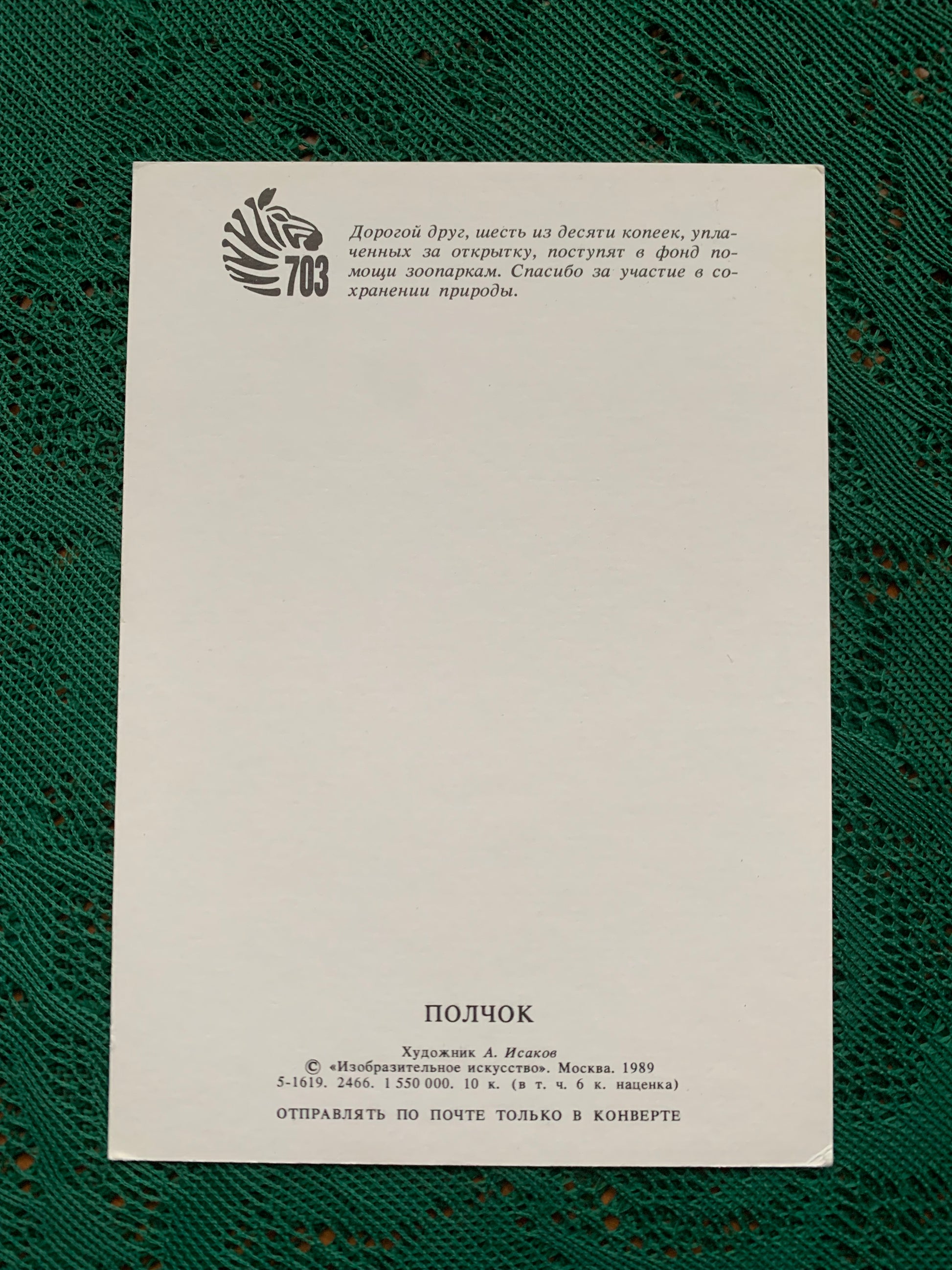 Unused Soviet Russian animal art postcard. Printed in USSR.