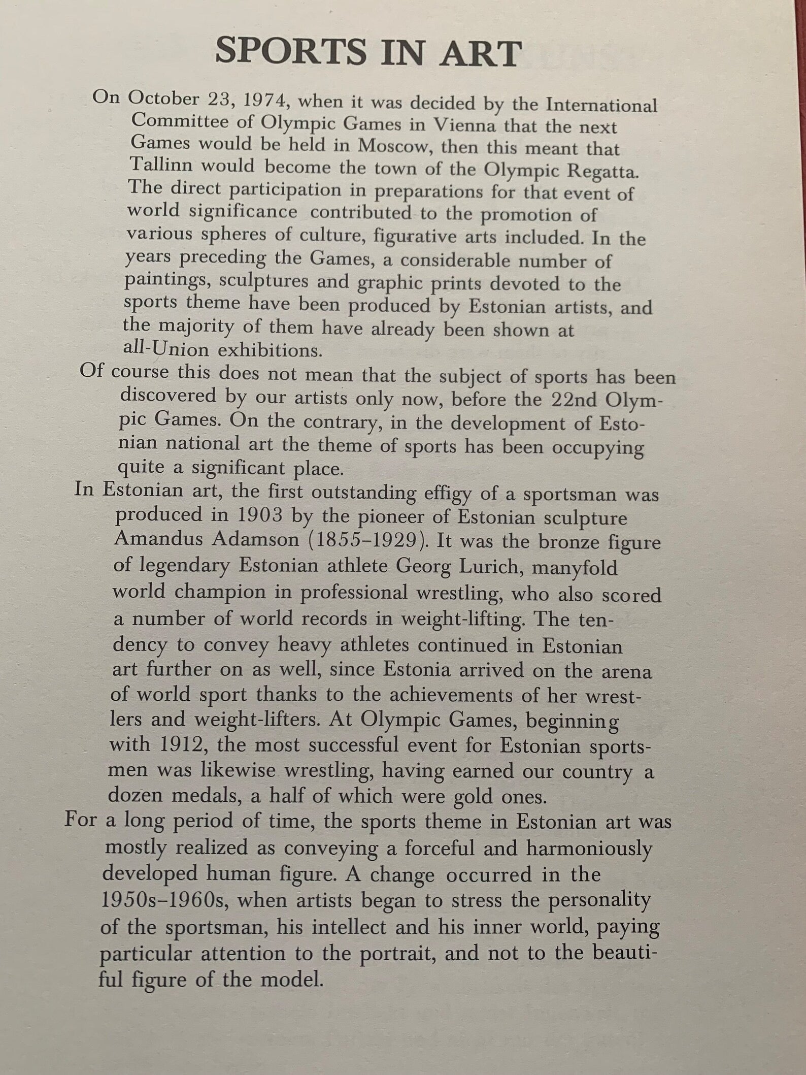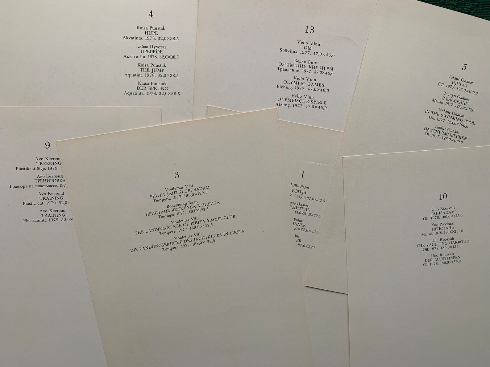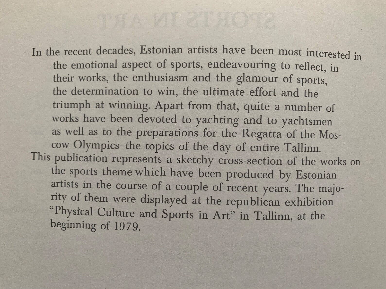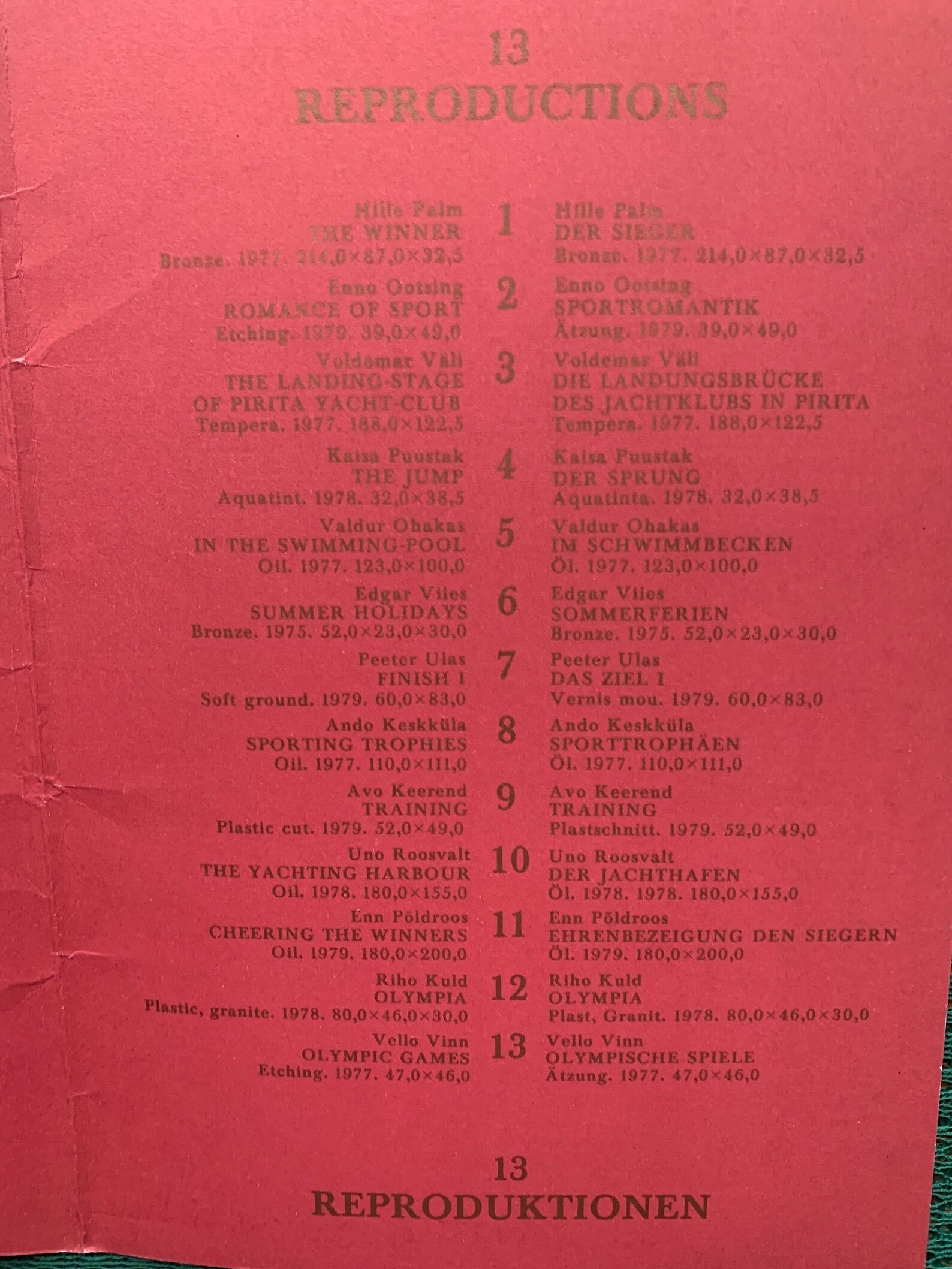 This publication represents a sketchy cross-section of the works on the sports theme which have been produced by Estonian artists for the Olympic Games in Moscow 1980. Approximate size: 21 x 29 cm // 8.3 x 11.4 in.