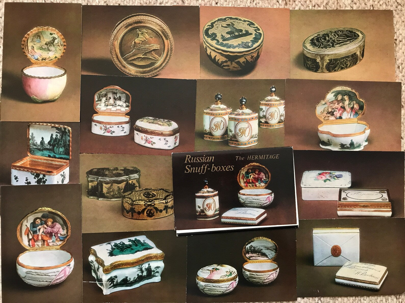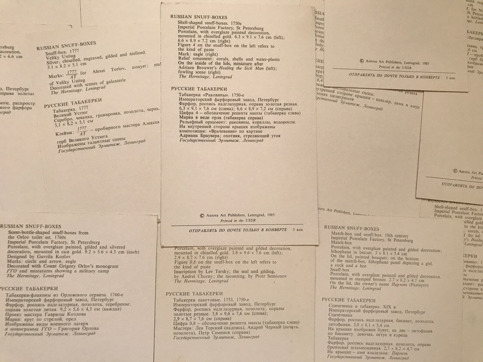 Set of 14 cards "Russian Snuff-Boxes" - Collectible postcards - The Hermitage Aurora Art Publishers Leningrad - Russia USSR - 1985 - unused