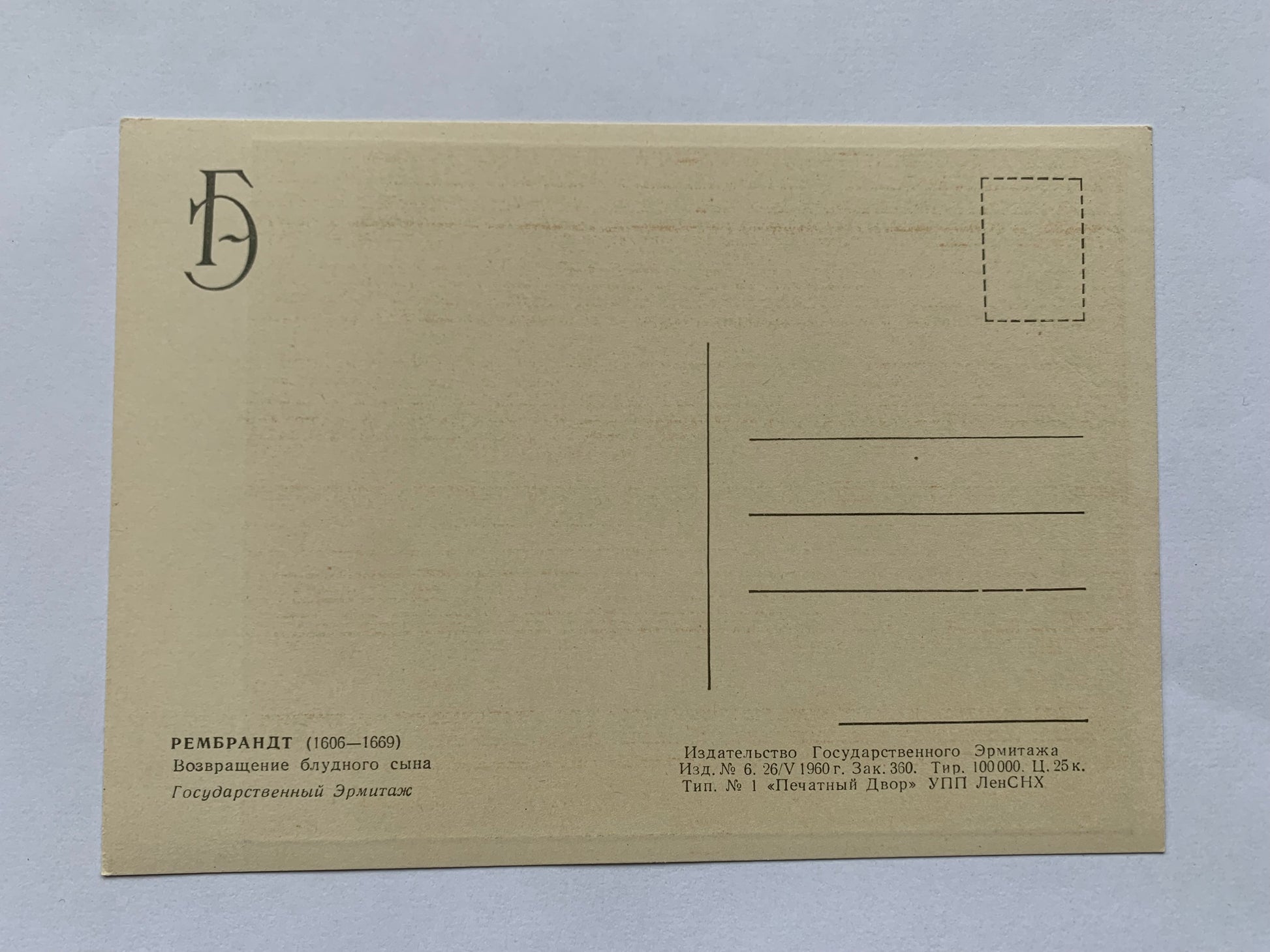 Soviet art postcard - Artist REMBRANDT (1606—1669) - Return of the Prodigal Son - Printed in USSR - 1964 - unused