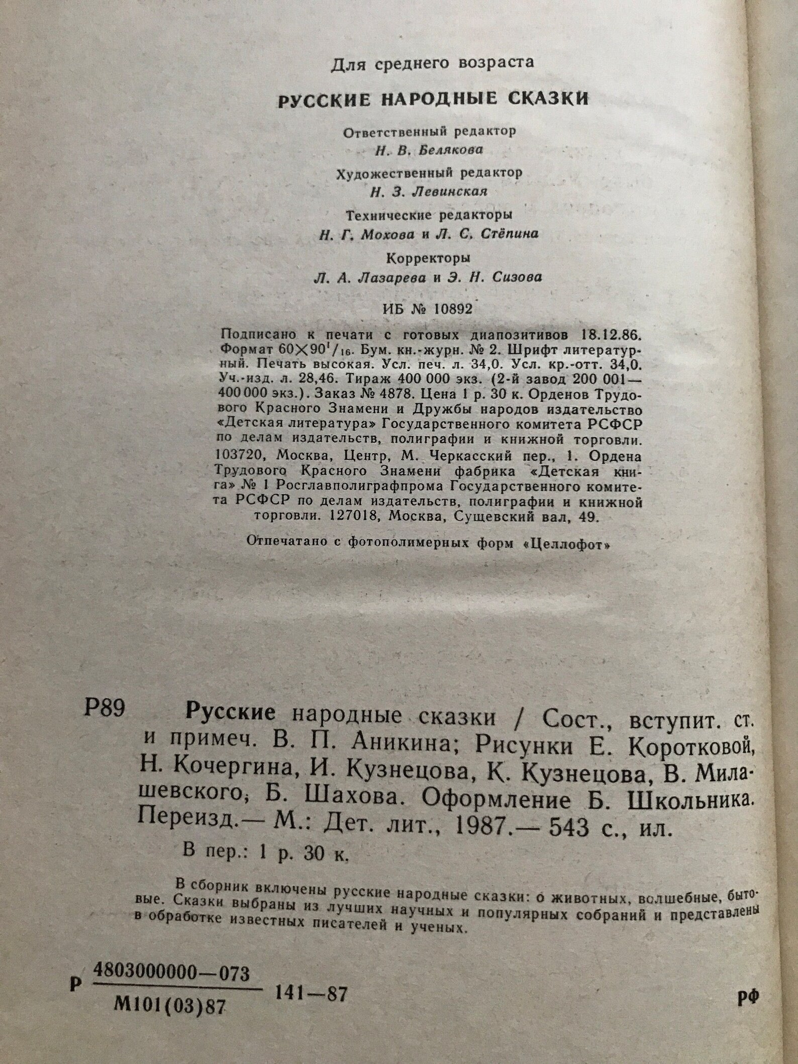 Vintage Russian Children's Book - RUSSIAN FOLK TALES - Русские народные сказки - 1987